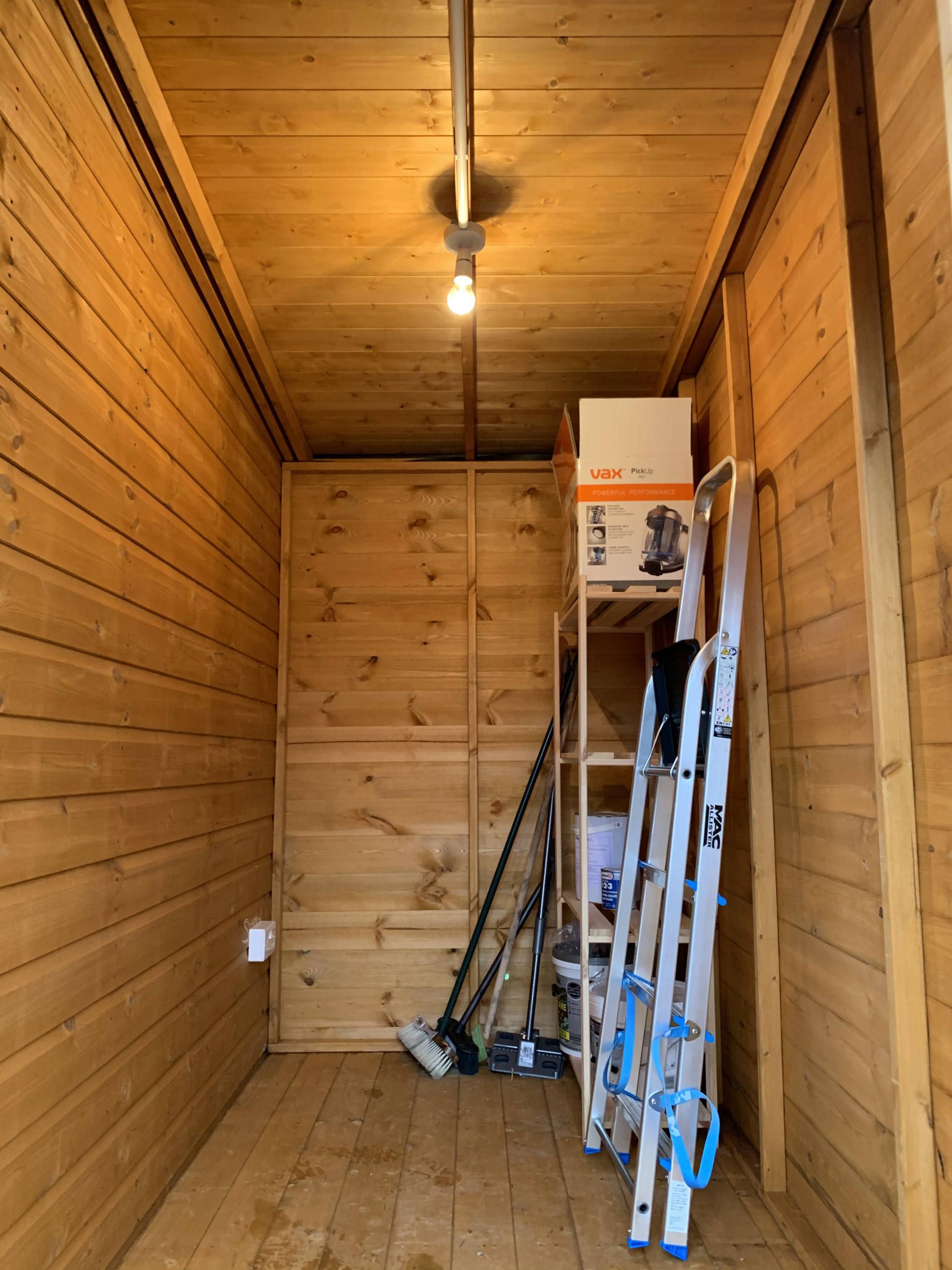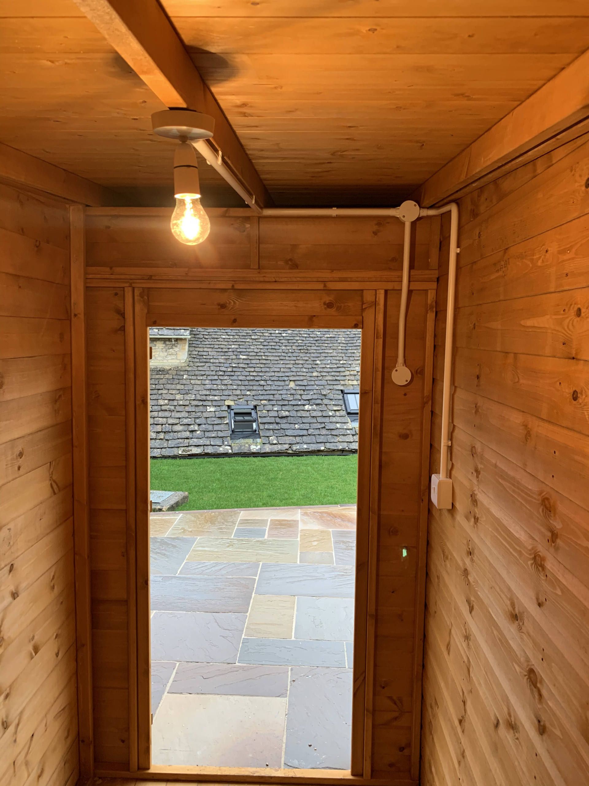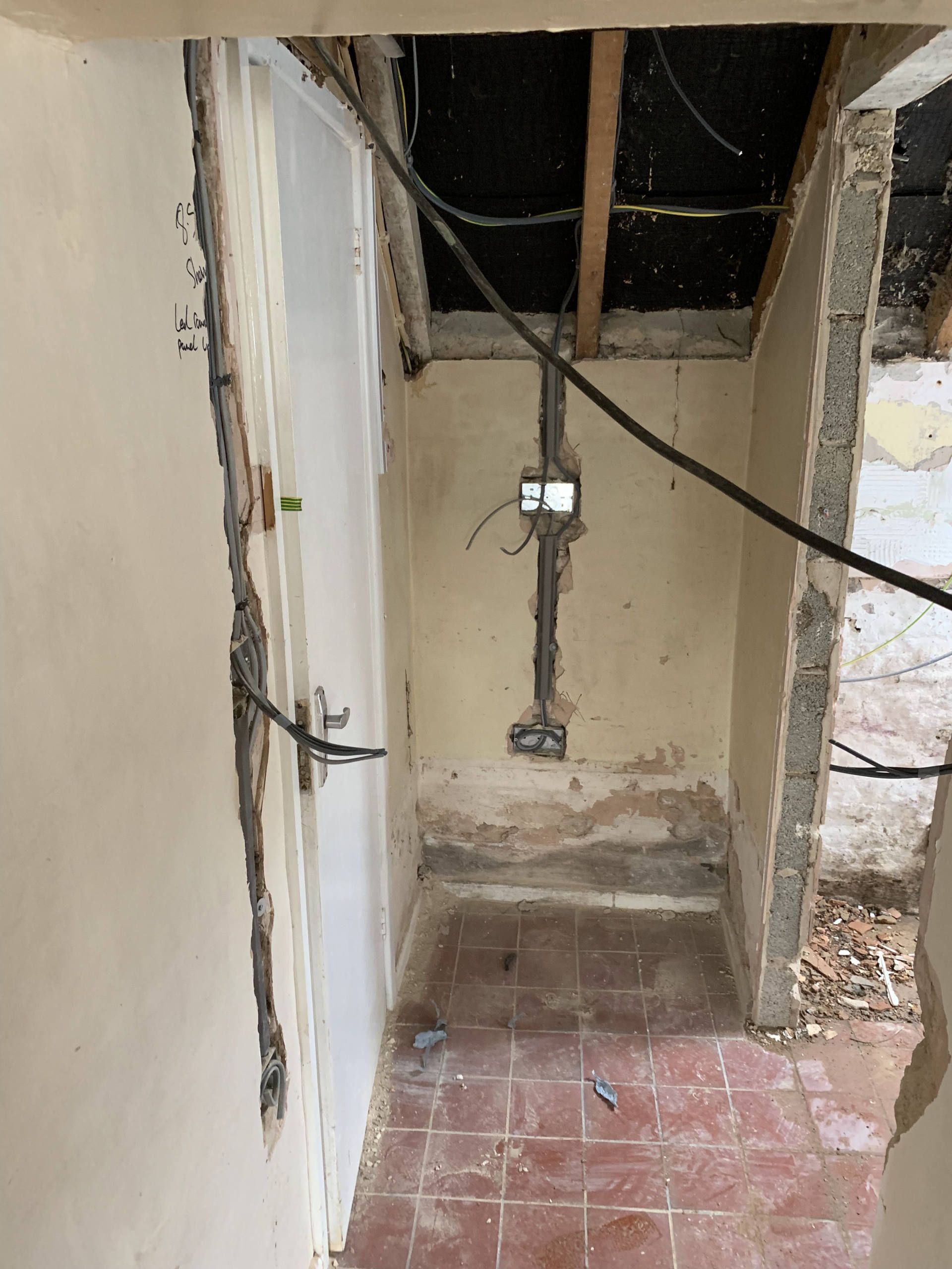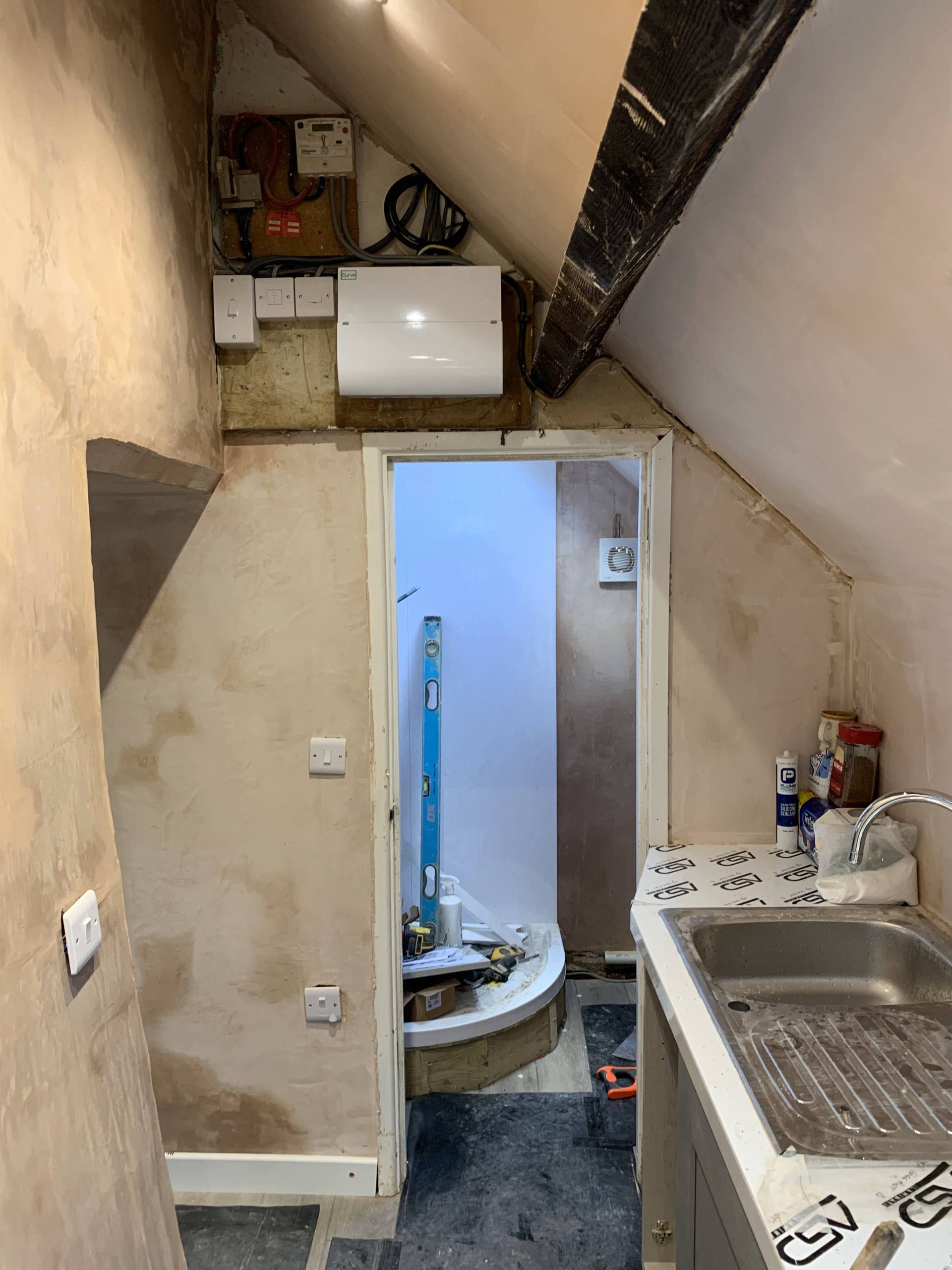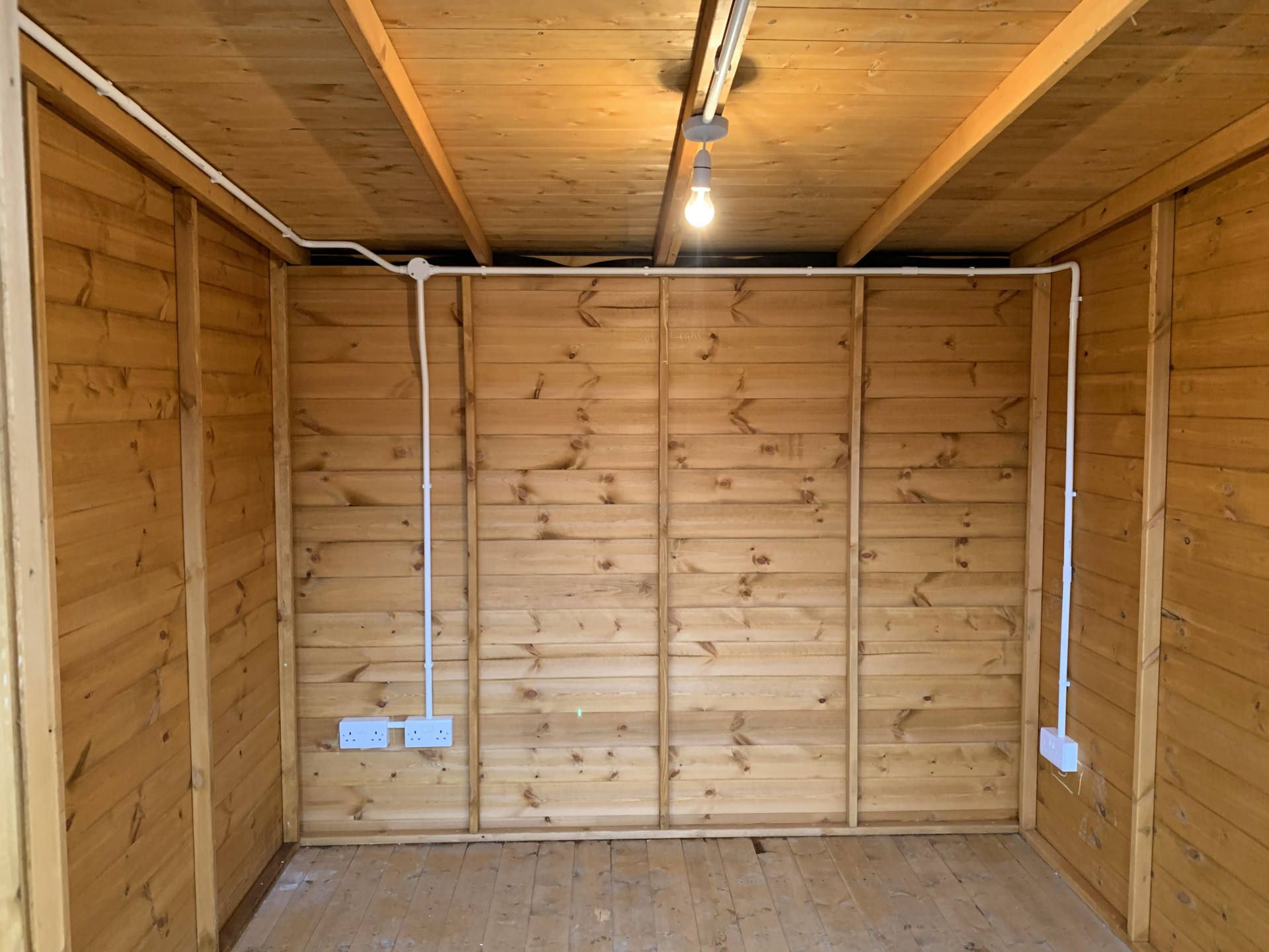 This was a full rewire of the property, all electric heating and hot water, with a lovely Wendy house/storage shed in the back garden.