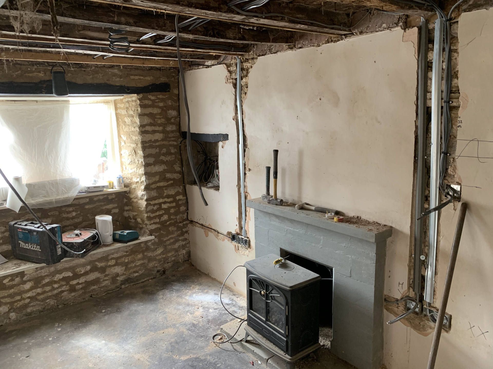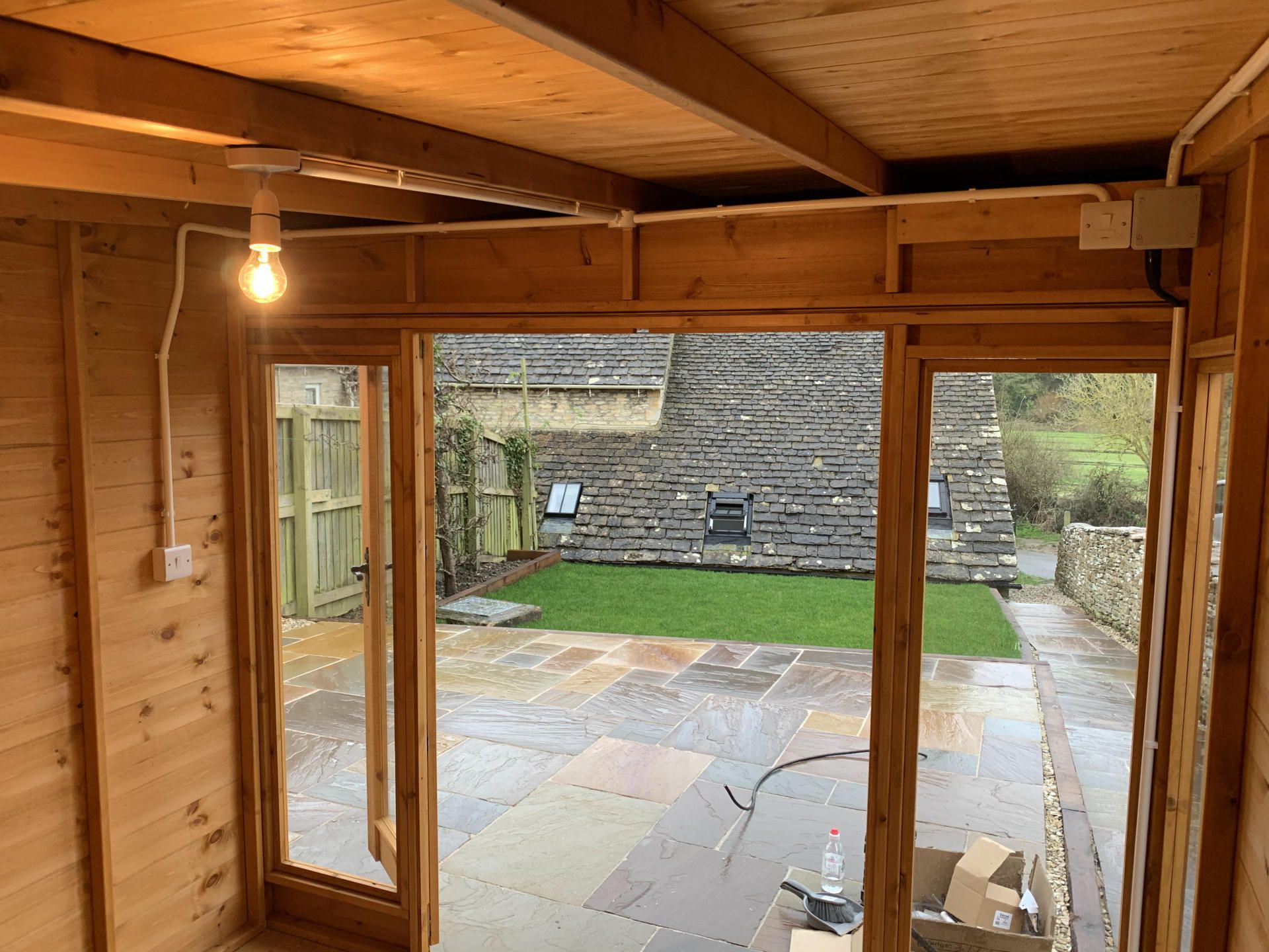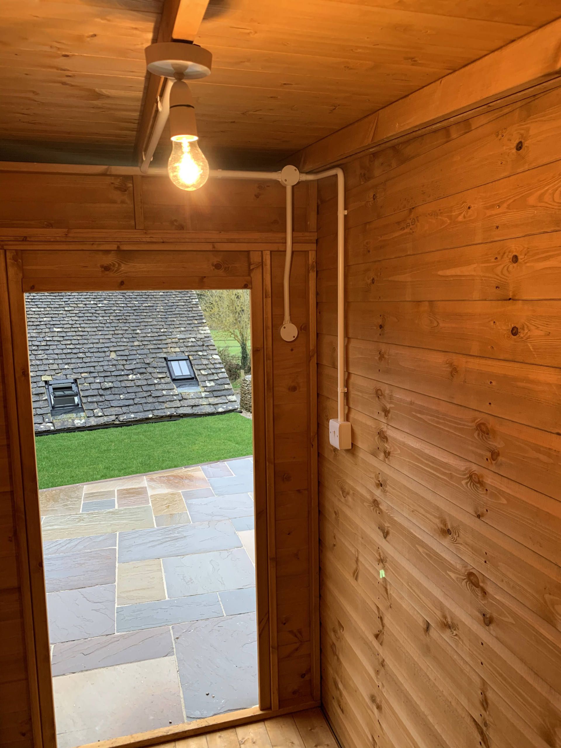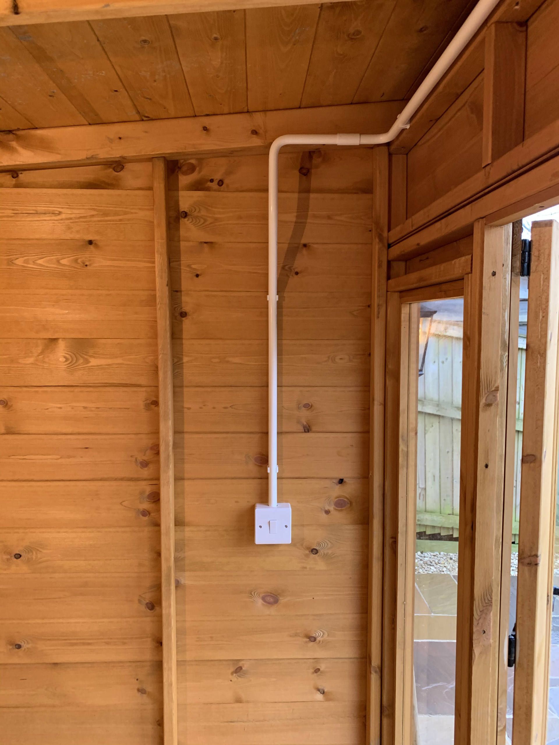 This was a full rewire of the property, all electric heating and hot water, with a lovely Wendy house/storage shed in the back garden.