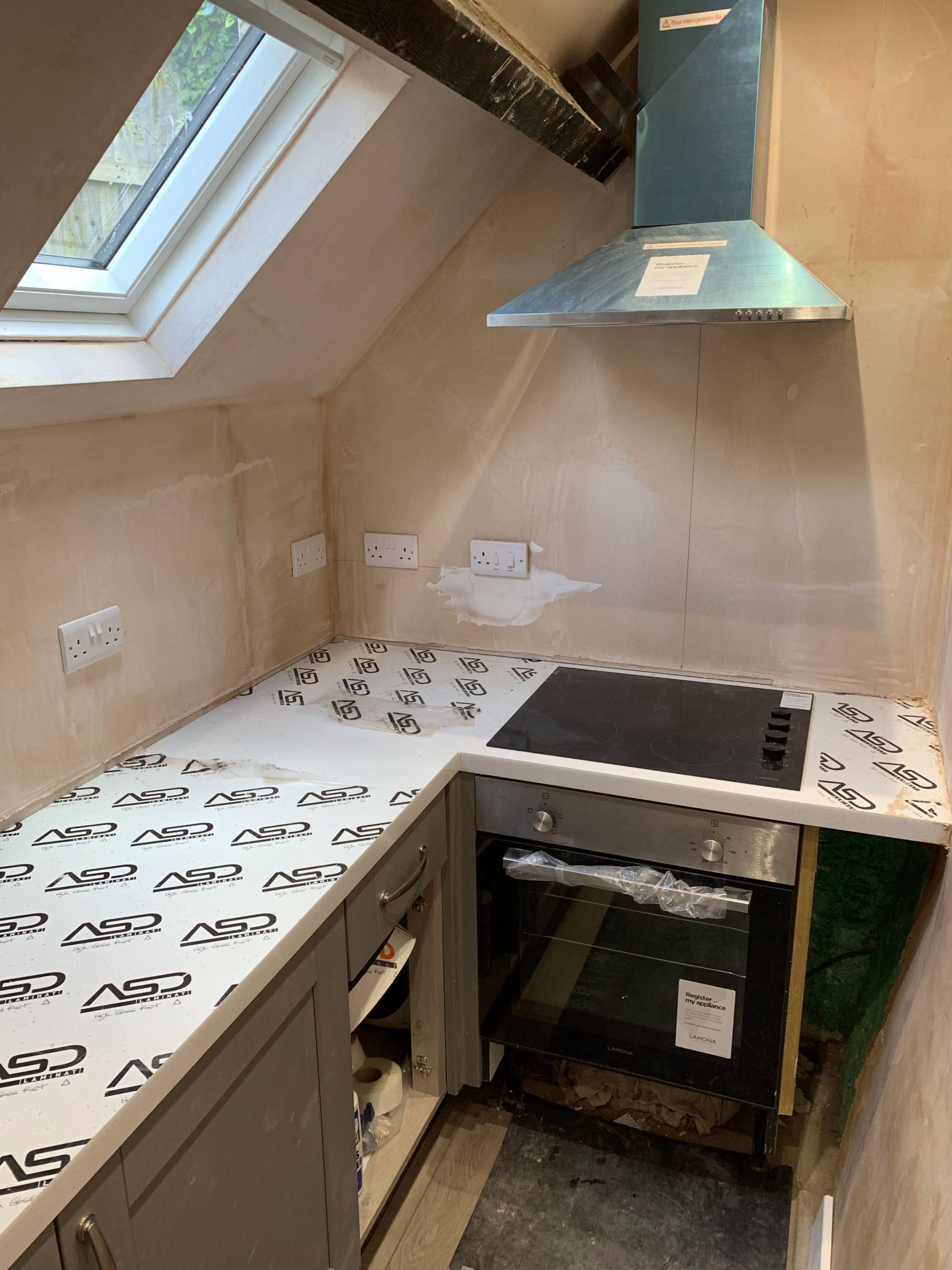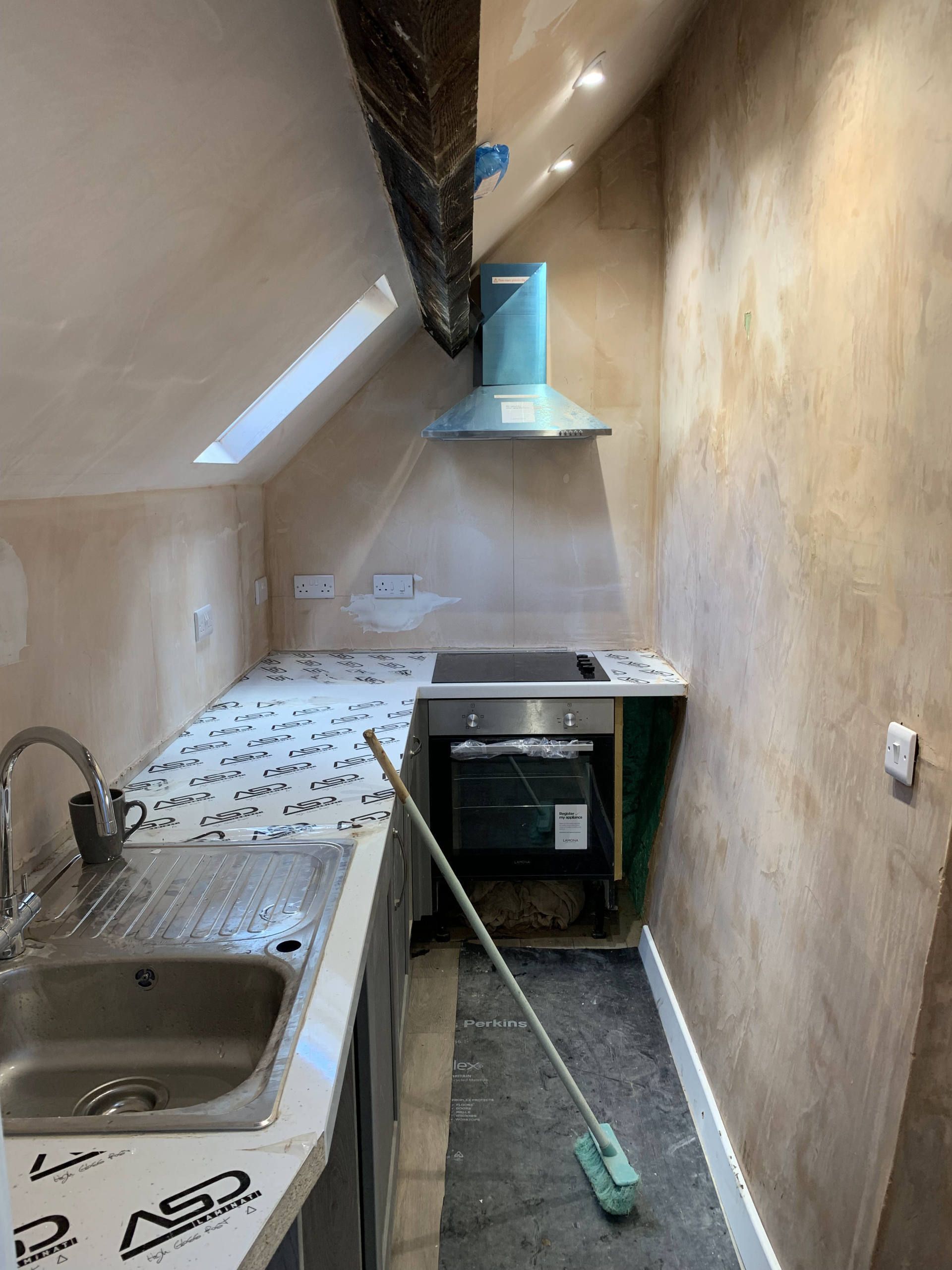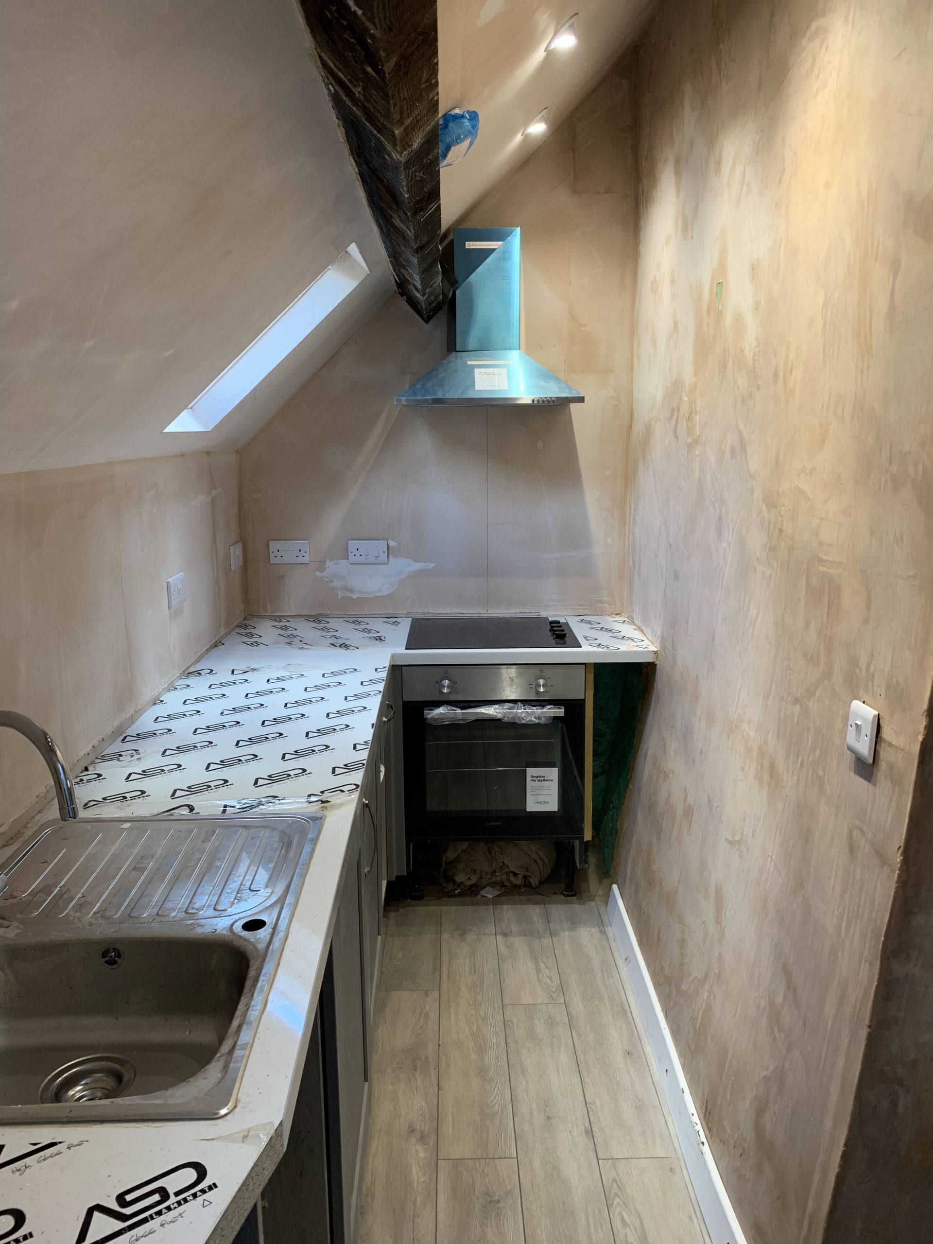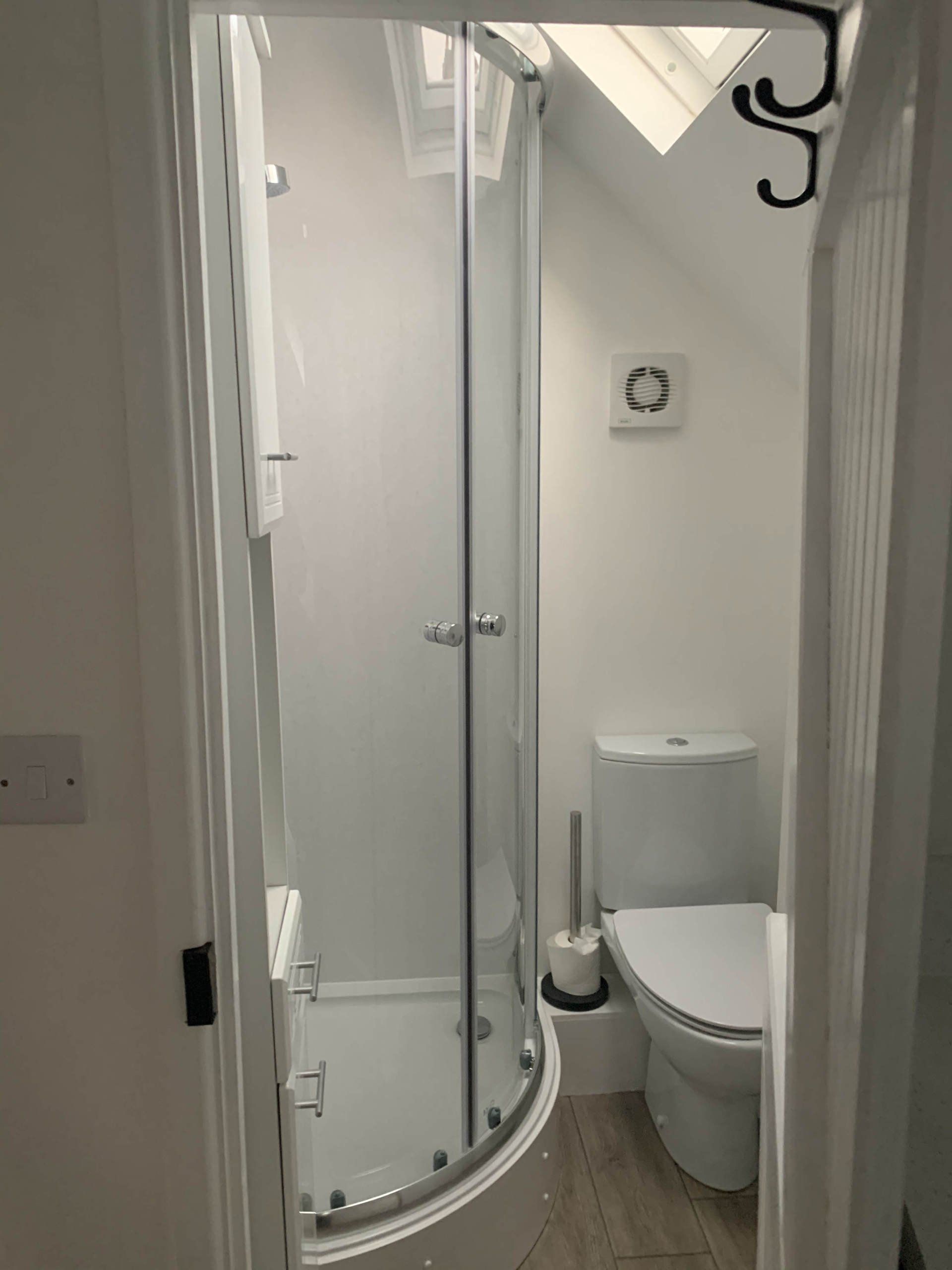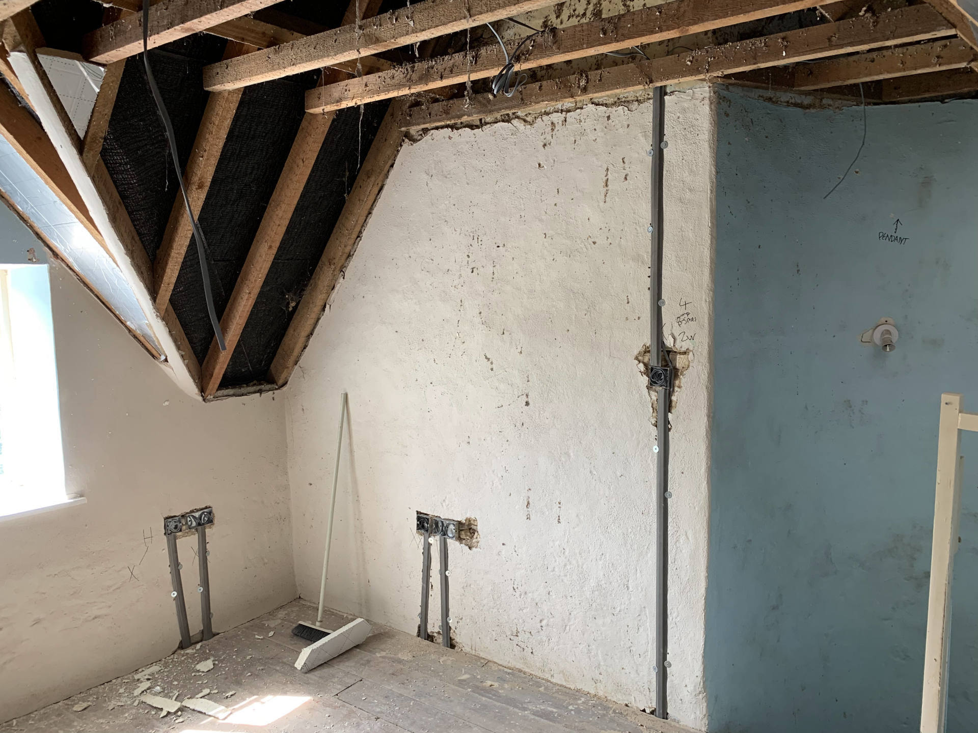 This was a full rewire of the property, all electric heating and hot water, with a lovely Wendy house/storage shed in the back garden.